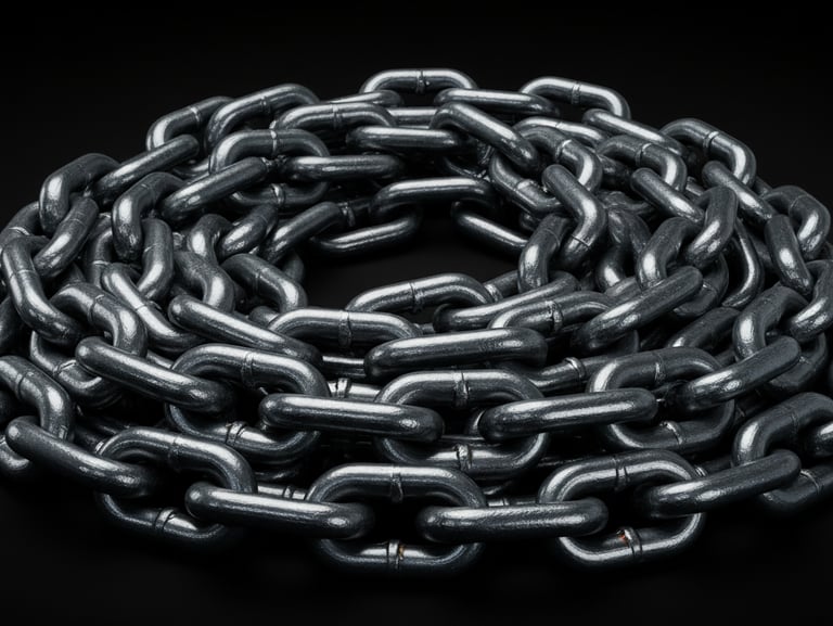 Anchor chains are heavy, durable chains used to secure a ship's anchor. They are typically made from high-strength steel and are designed to withstand the immense forces exerted by a vessel at sea.